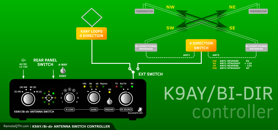 Example for controller with 4-way beverage system and simply K9AY loop antenna: