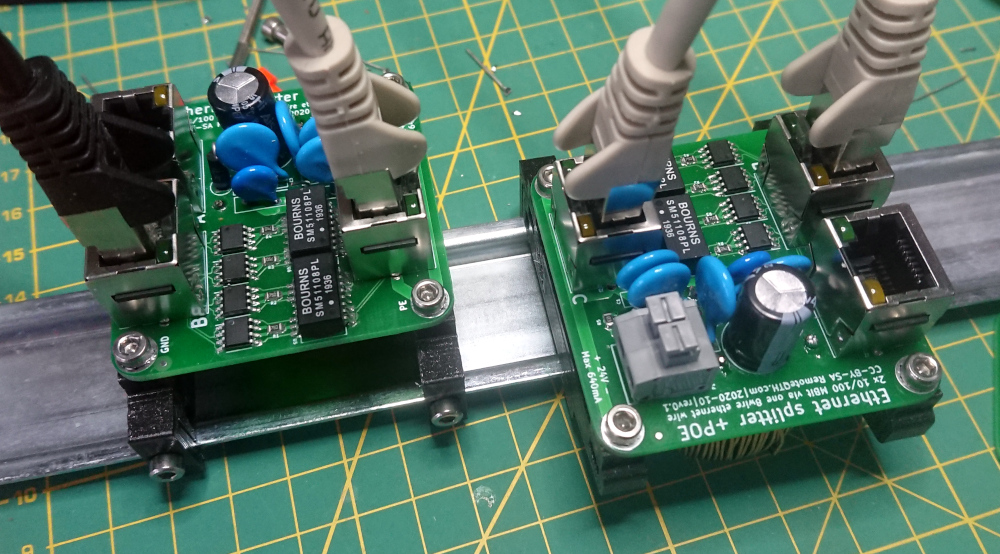 For split/join two 100 Mbit ethernet, to one UTP wire +POE (for use need two module)