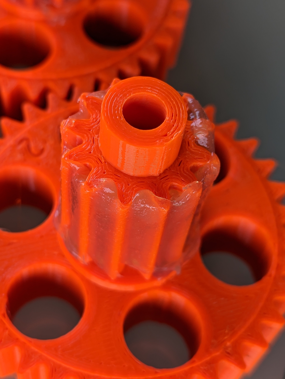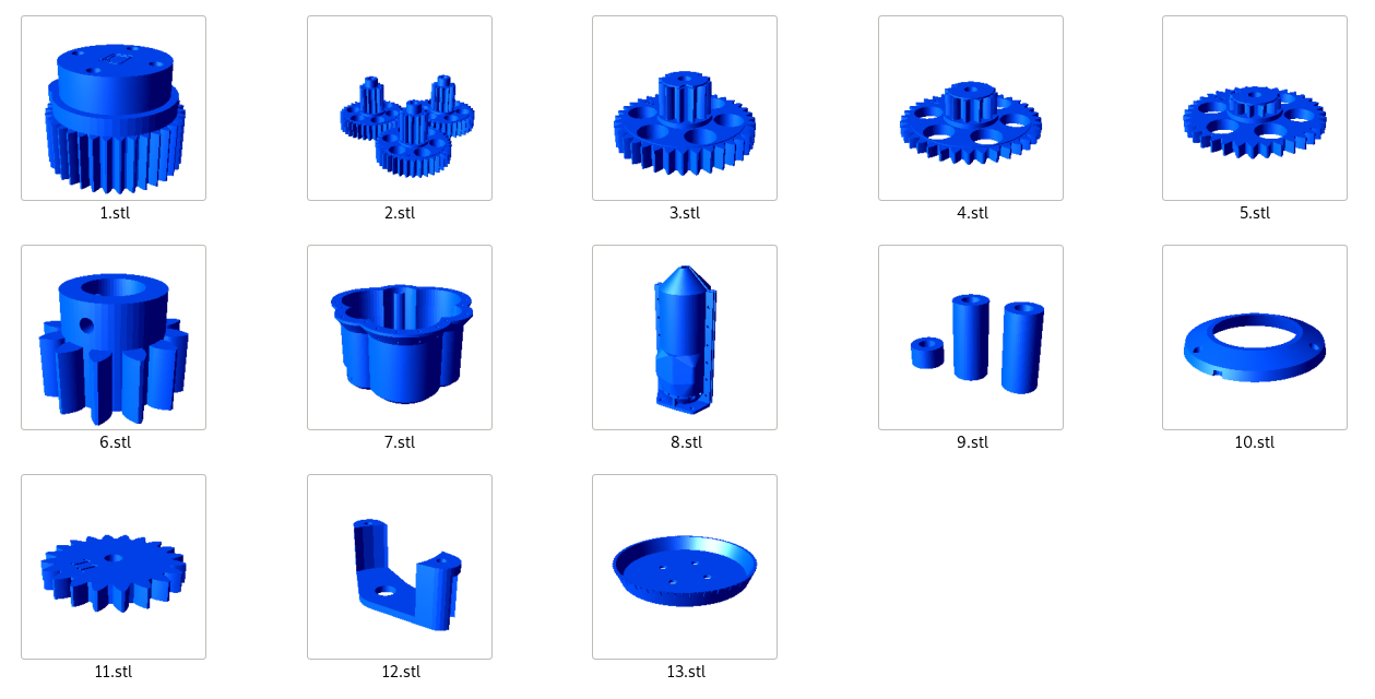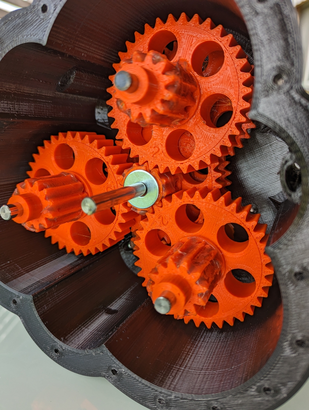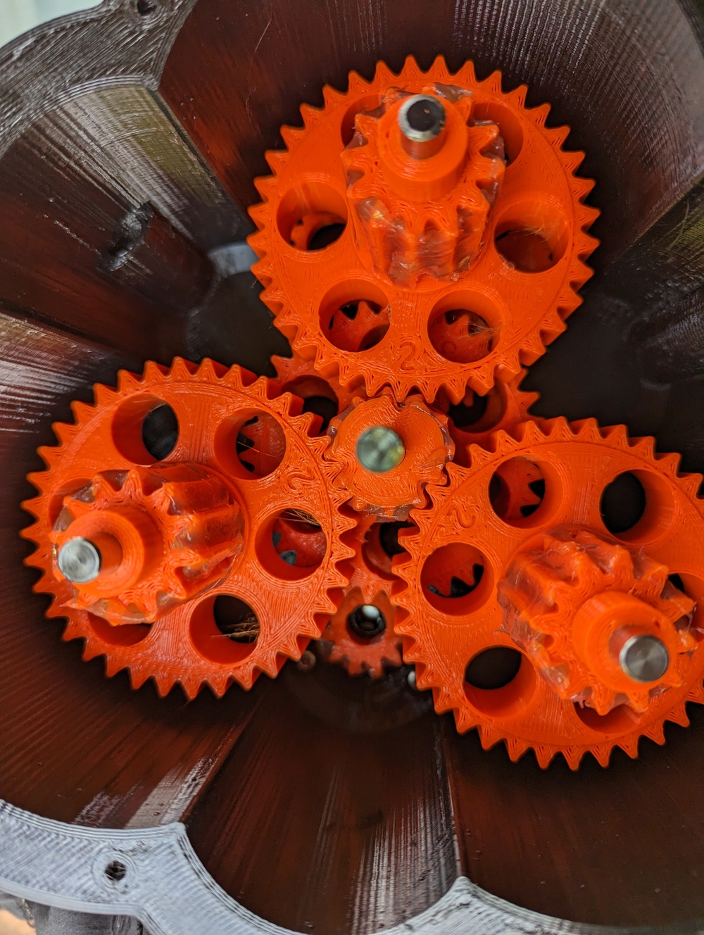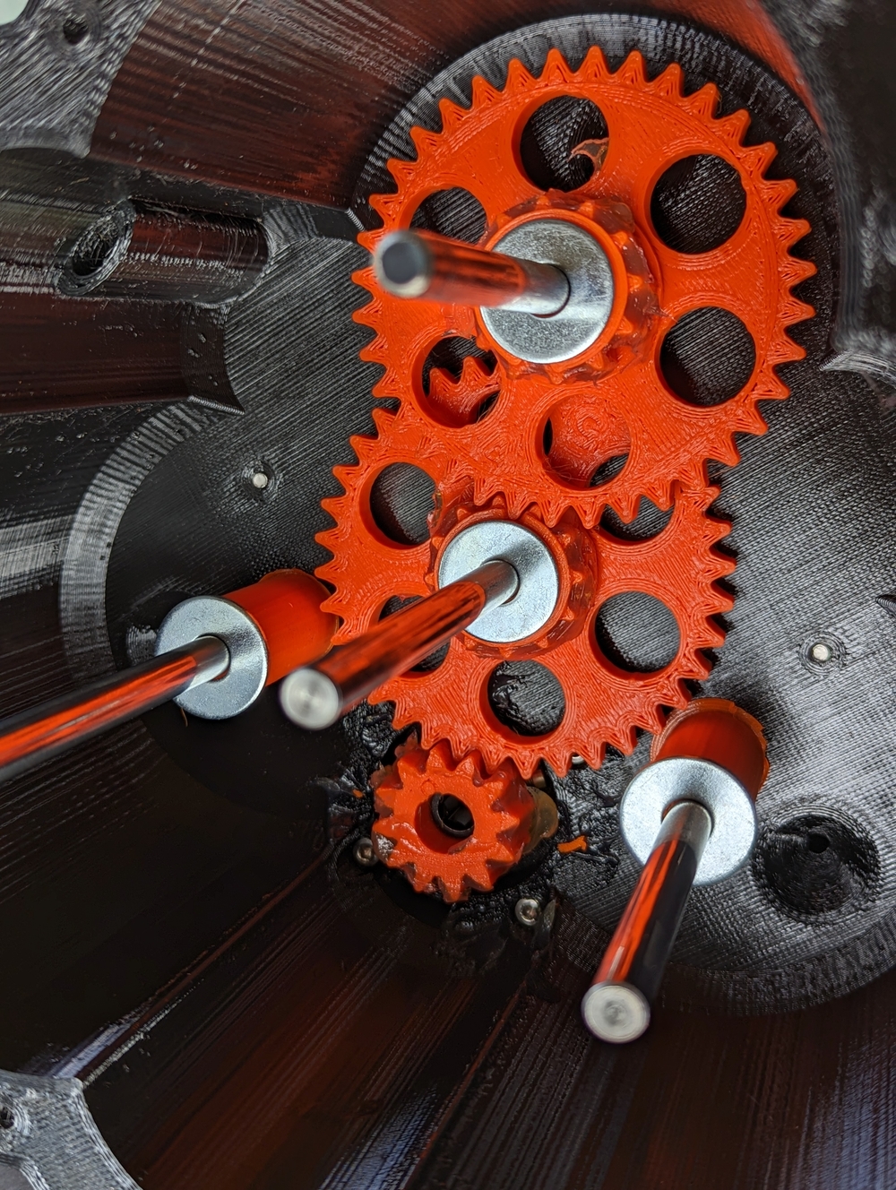 Place the three 2.stl gears on the edge of the axle so that the number marking points to the center axle