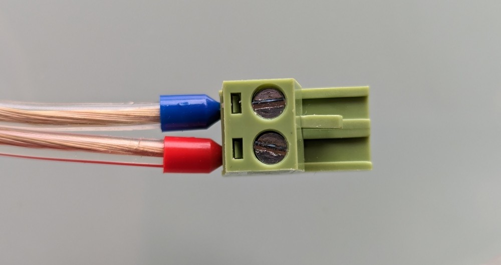Solder three 0.5mm^2 wires, 20cm long, to the potentiometer. Crimp the ends with end caps