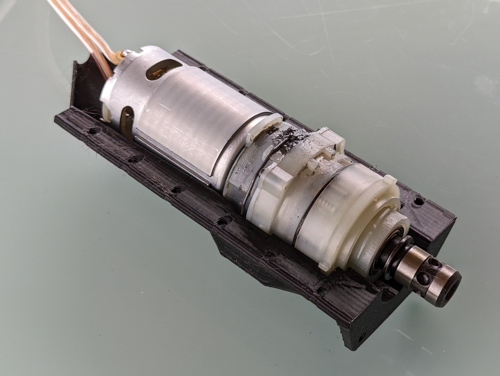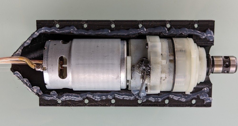 Before disassembly drill tool for extract motor, set the gear ratio to 1 (slow), and the torque to maximum (drill)