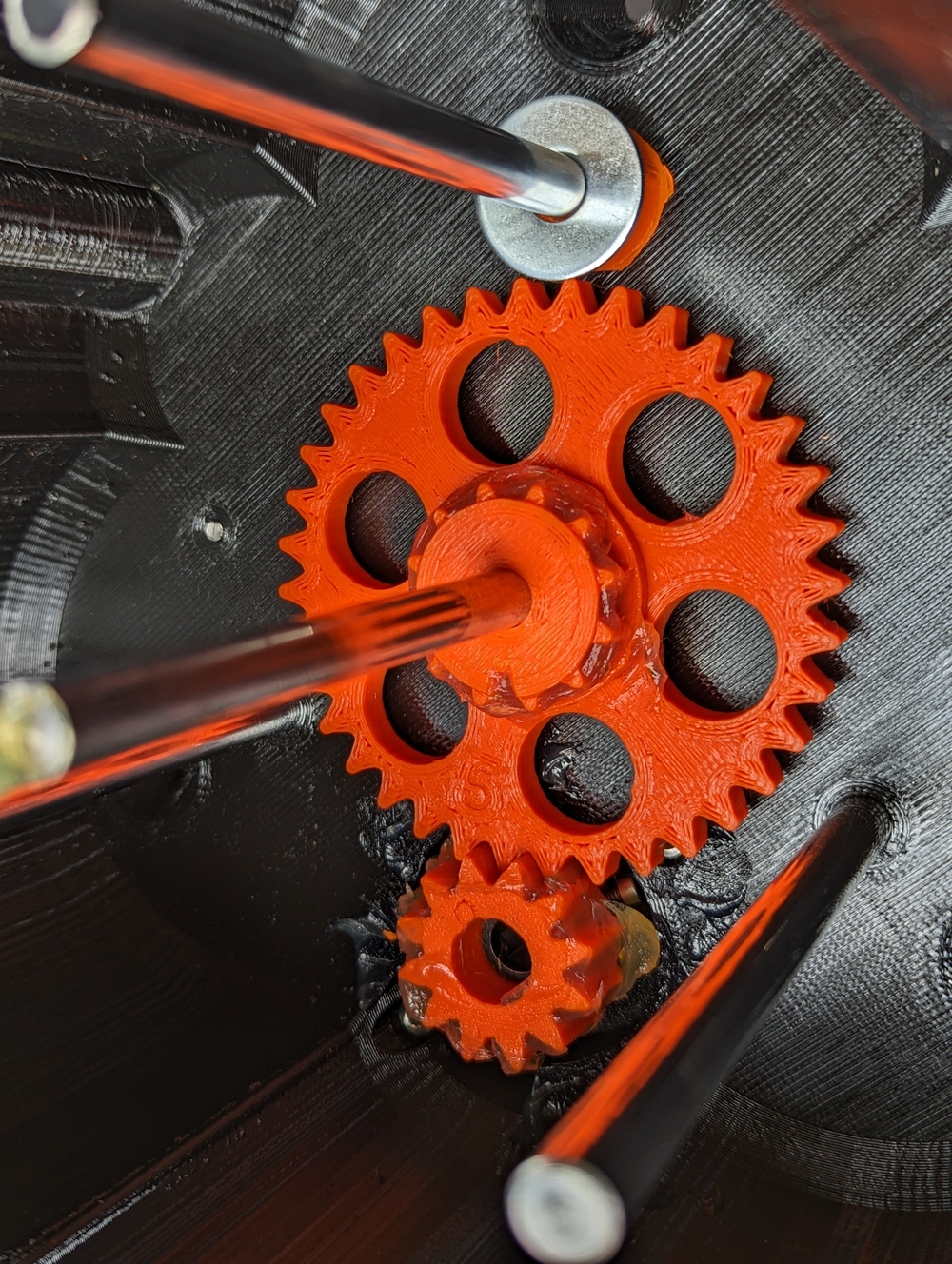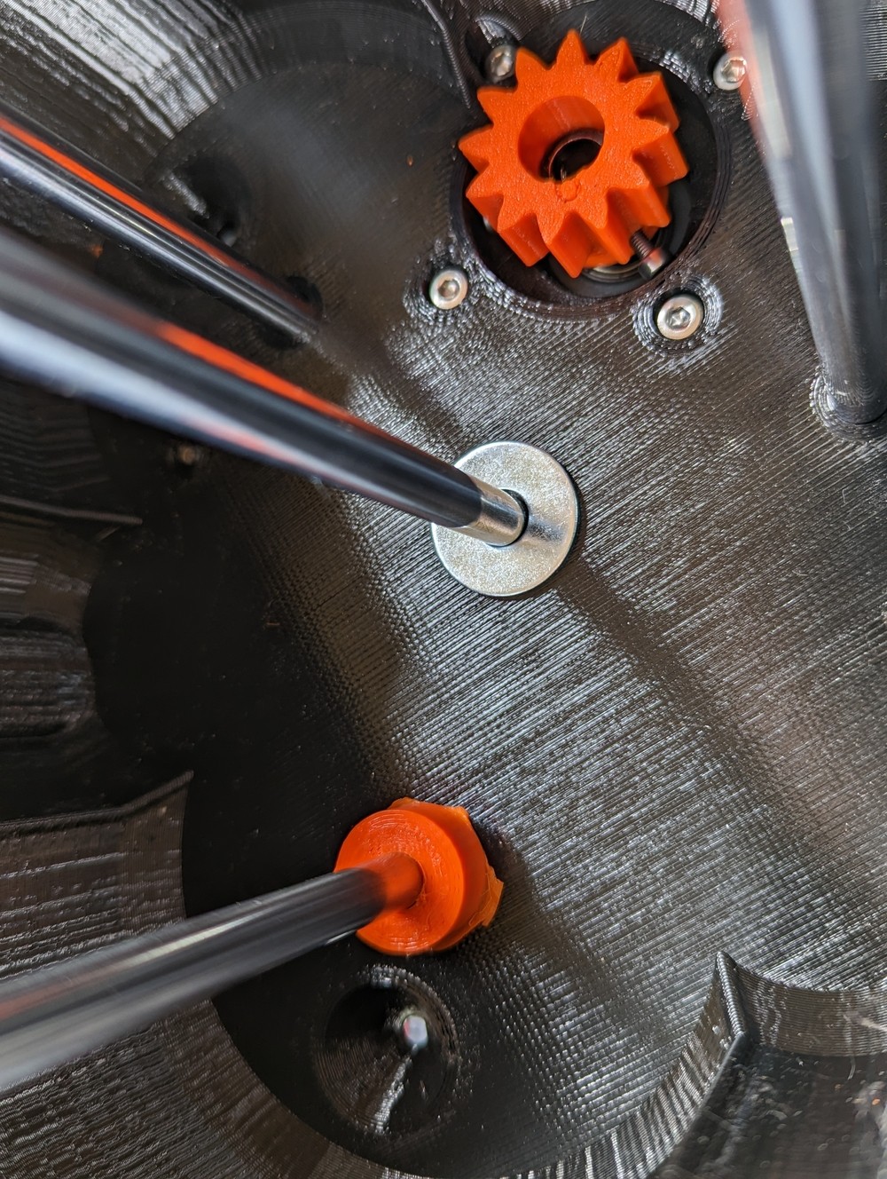 On the two free axes, you put on the higher printed washers of the 9th stl and on all the outer axes, you put on three metal washers.