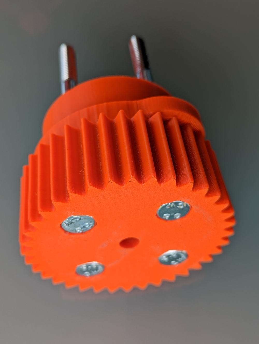 Press the 6.stl gear onto the motor shaft so that the side holes are directly against the depressions in the motor shaft. Then screw three M3x10 screws into the hole - screw in sensitively and stop as soon as the resistance increases - it is screwed directly into the plastic. We recommend applying secondary glue to the plastic hole before inserting the screw.