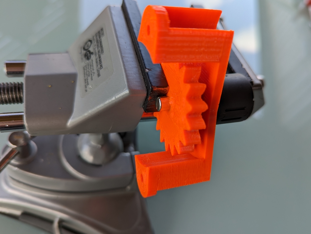 Using a vice, very carefully press the 11.STL gear onto the potentiometer shaft as shown in the picture