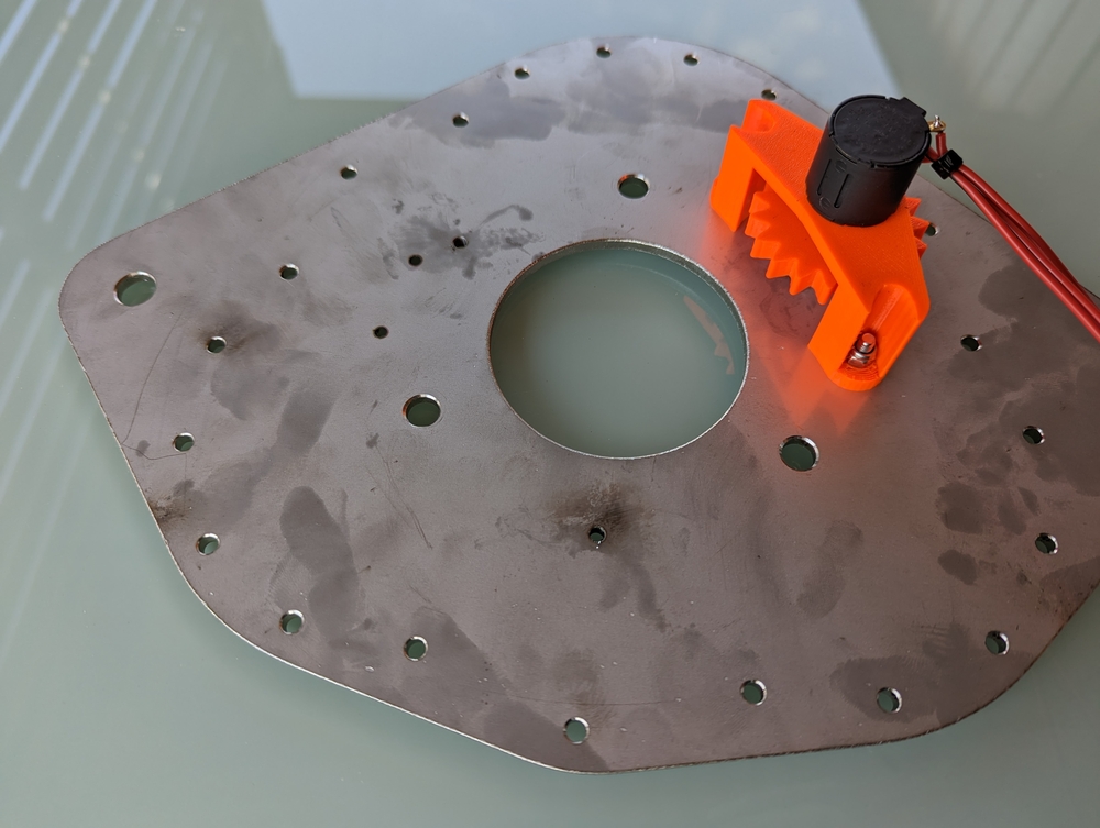 Set the azimuth potentiometer to the center position, and screw it to the main stainless plate using two M4x16 screws, plus nuts.