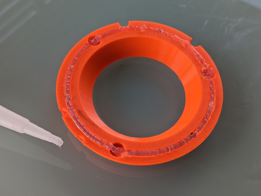 Apply silicone sealant to the perimeter groove of part 10.stl
