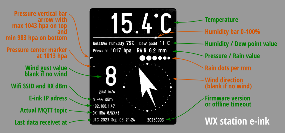 To display the values from the weather station on the WiFi e-ink display, use the tutorial on GitHub
