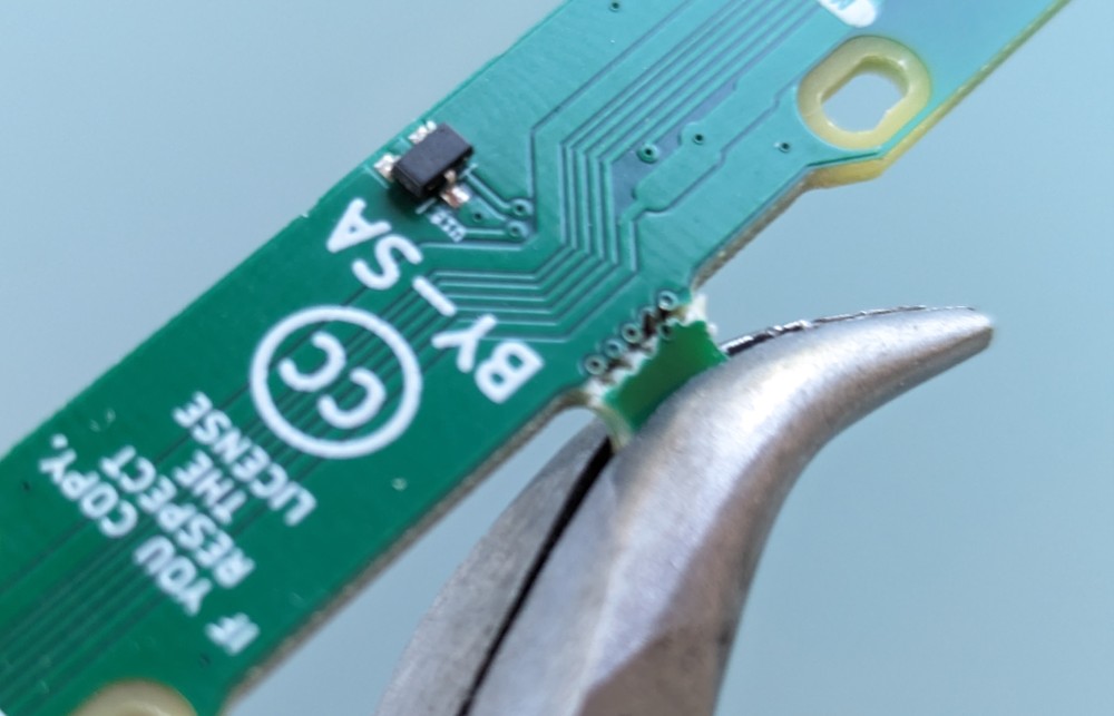 1. Carefully break off the two parts connected to the main PCB board via the bridge