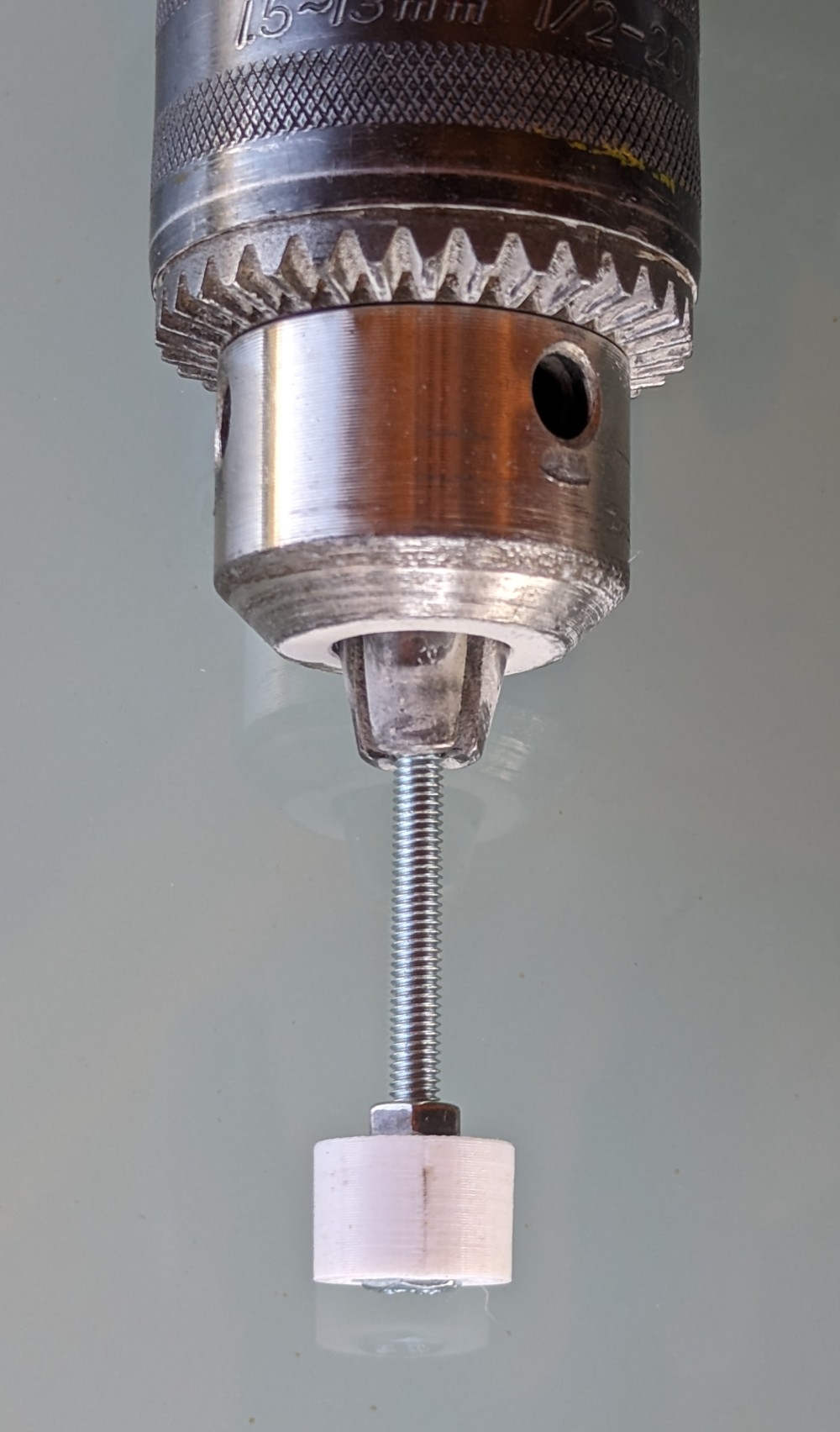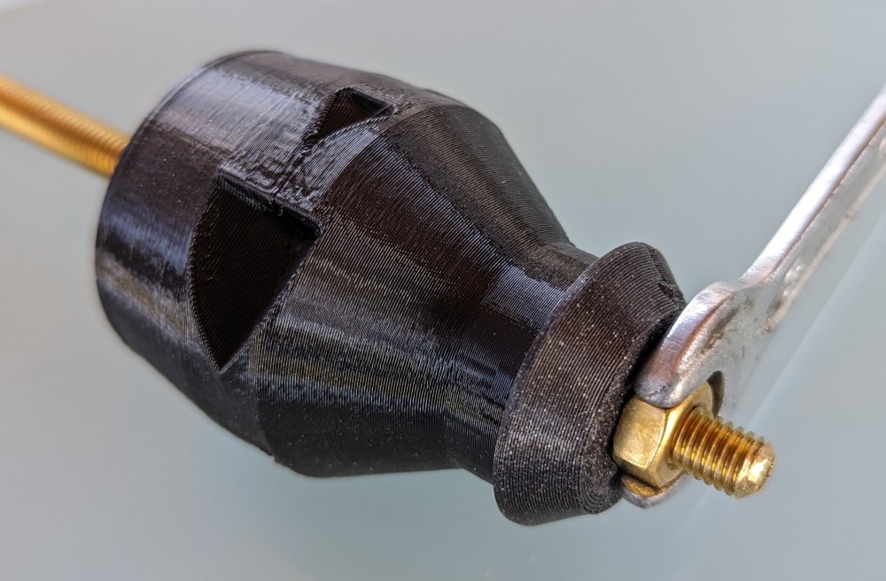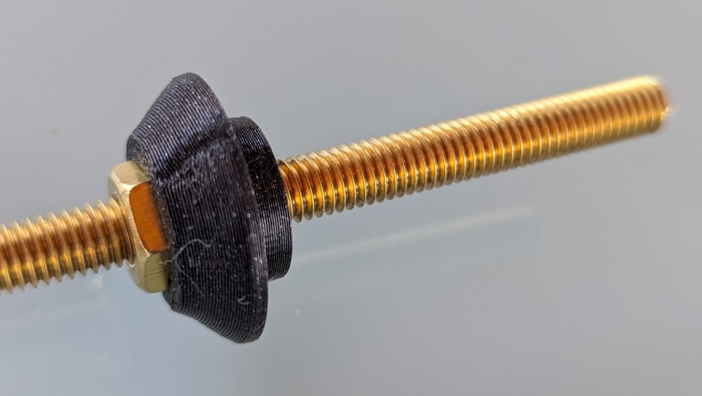 First, screw a nut on a brass threaded rod about 50mm from the edge.