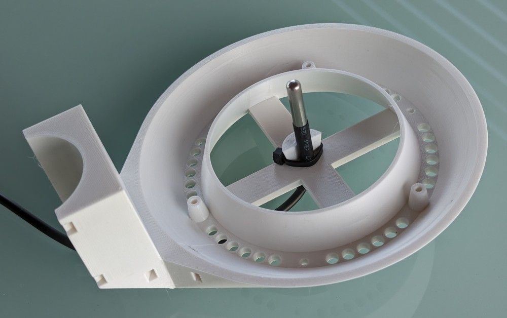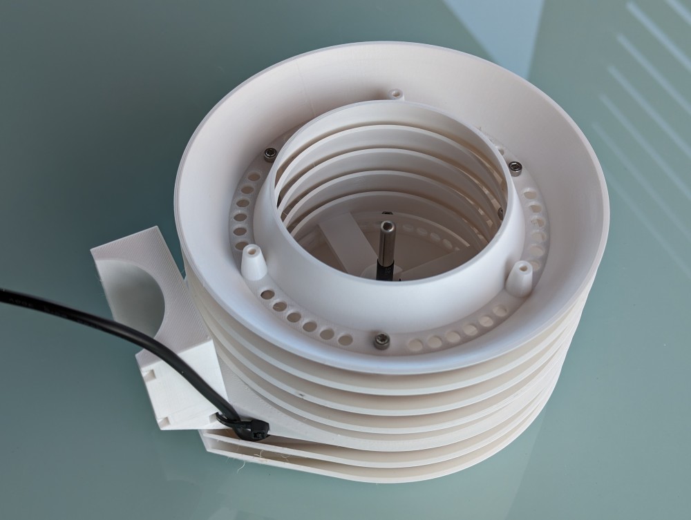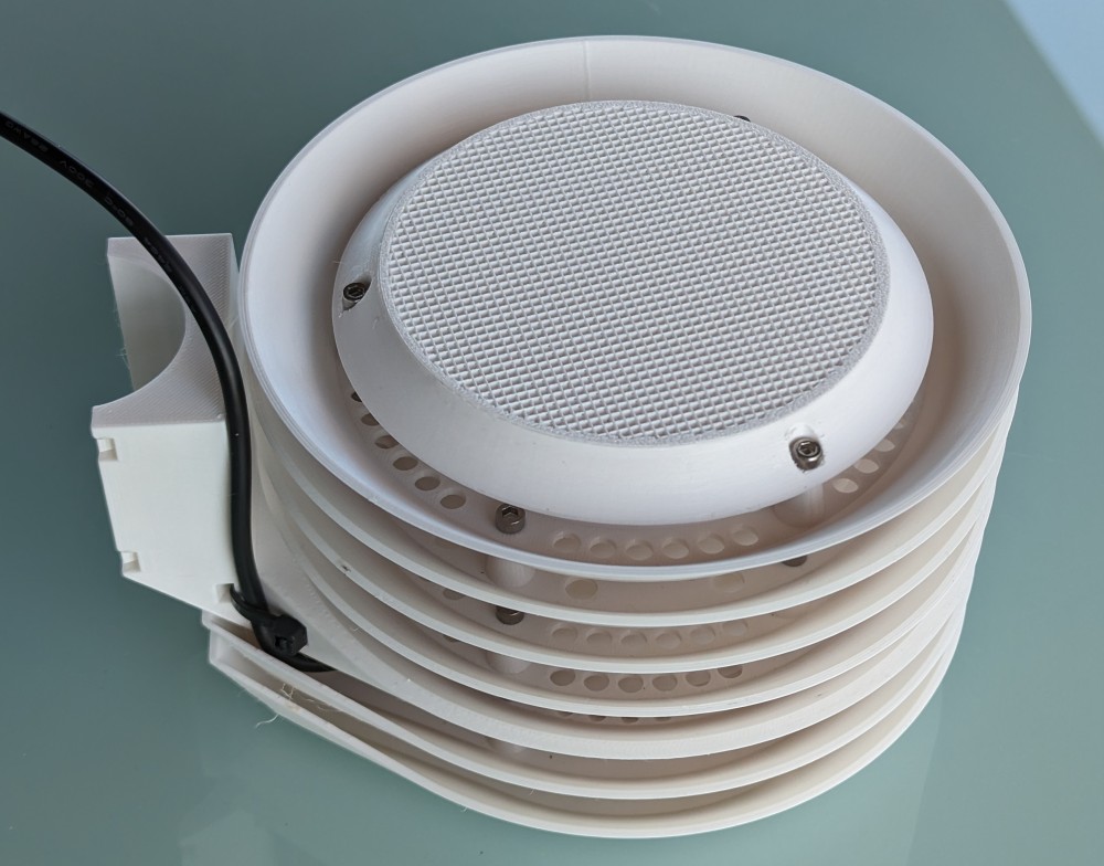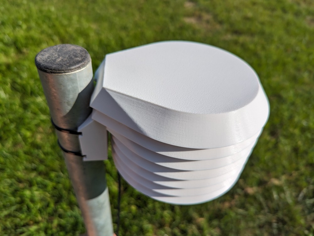 3D printed shield, against overheating of the thermometer in direct sunlight.