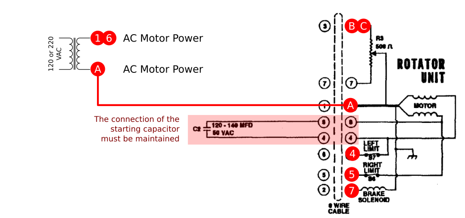 - If the continuous draw of your motor does not exceed the allowed limit, but the fuse still blows, the problem may be in the starting current. This current is naturally limited by the length of the power cable. If the problem persists even with the rotator on the mast, supplement the connection with a starting resistor (B57237S0109M) in series with the rotator motor.