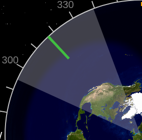 - The direction of rotation indicator is a transparent triangle whose angle corresponds to the width of the antenna's radiation pattern. The center is marked with a green pointer on the scale. The width of the radiation diagram is set in the Setup page, item Antenna radiation angle in degrees.