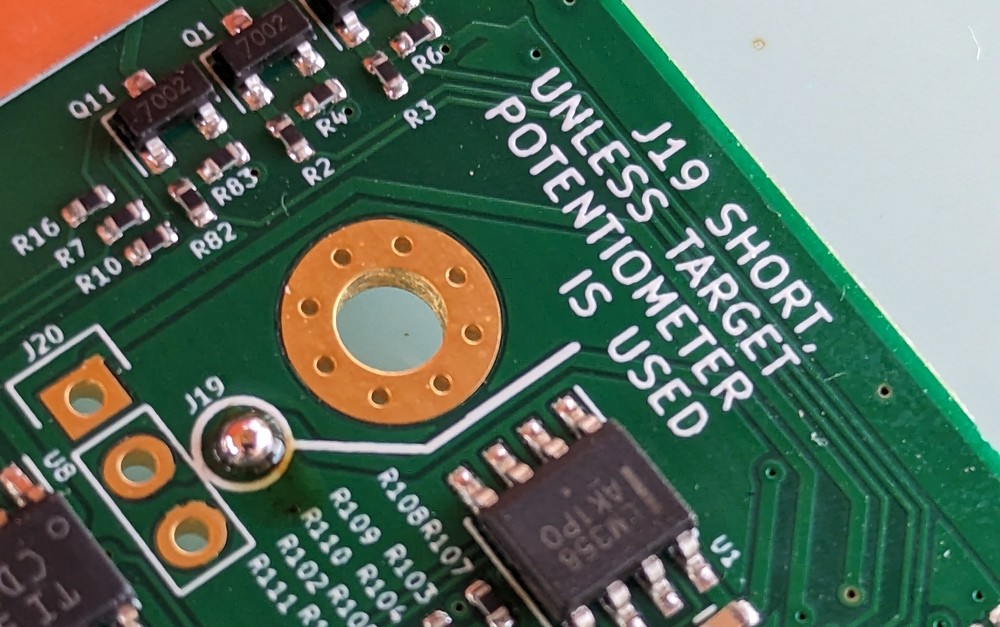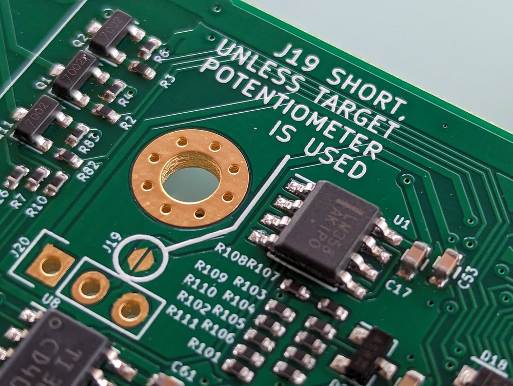 - Azimuth gain/shift op-amp, is turned ON, ONLY when using a multi-turn three-wire potentiometer, of which only one turn is used. Because one turn generates a small change at the input of the AD converter, it is possible to help amplify the preamplifier. How to do it: