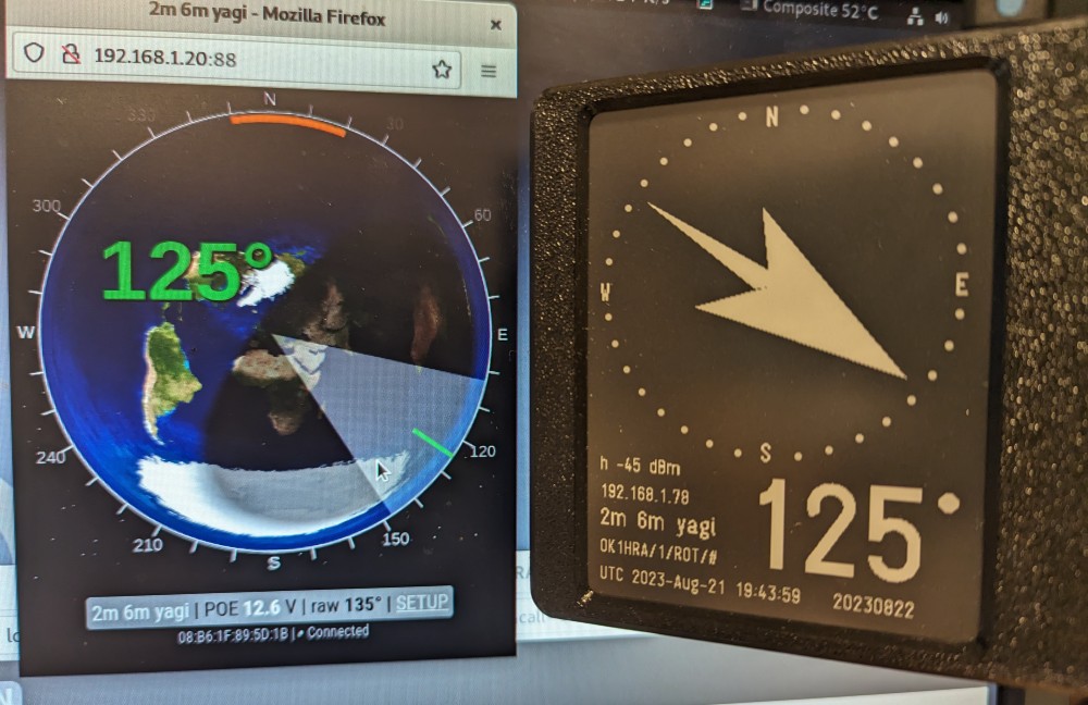 - Gray bar on the bottom shows. | Antenna name - set in the Setup page, Rotator name item. | The power supply voltage controls the electronics from the POE injector - if it drops below 11.5V, the watchdog stops the rotator. | Raw angle rotated - angle without displacement, as if it were zero degrees north. | Link to the Setup page.