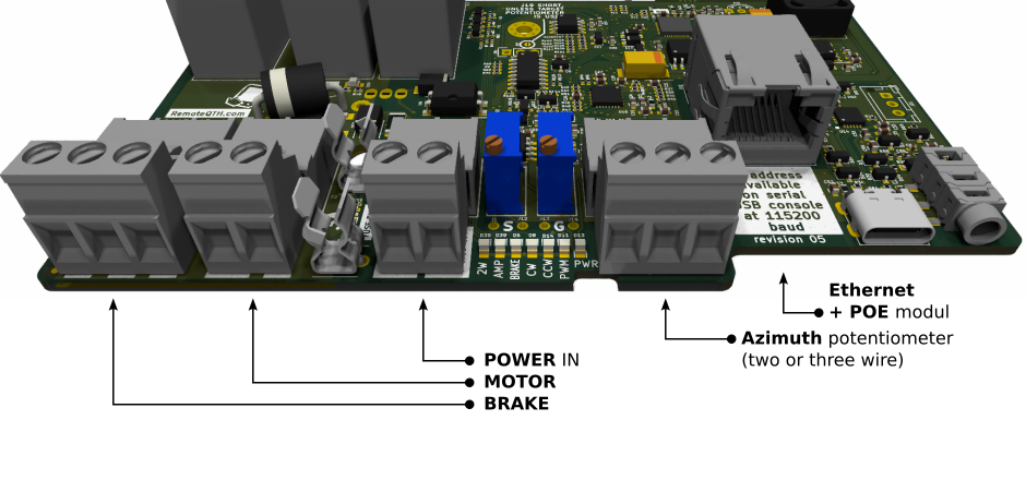 - The Simple rotator board is powered by a POE module