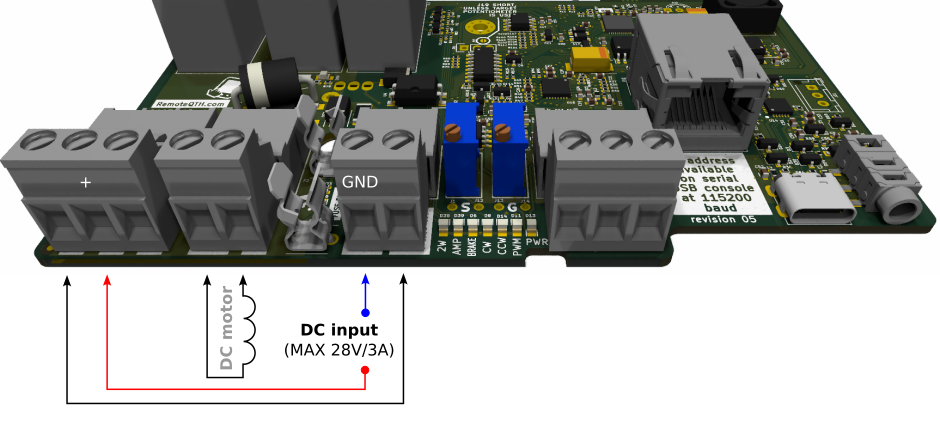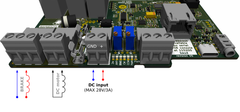 - DC PWM control activates the PWM ramp-up and ramp-down when using the DC rotator. If you use a rotator without hardware endstops, the destruction of one component (power mosfet) can cause the rotator to crash. Therefore, it is safe to connect one more active element in series (relay intended for the brake). This setup is highly recomended, see Connection section. Turning DC PWM on activates two other settings: