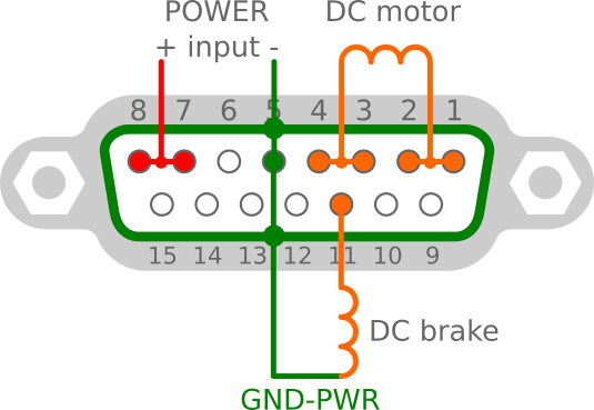 For connecting AC motor power, use only power GND on pin 5 and shield.