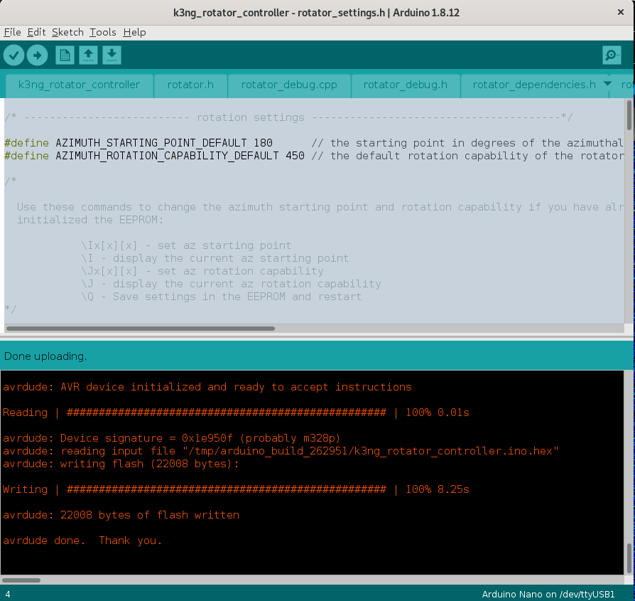 - Now ready for upload K3NG rotator fimware.